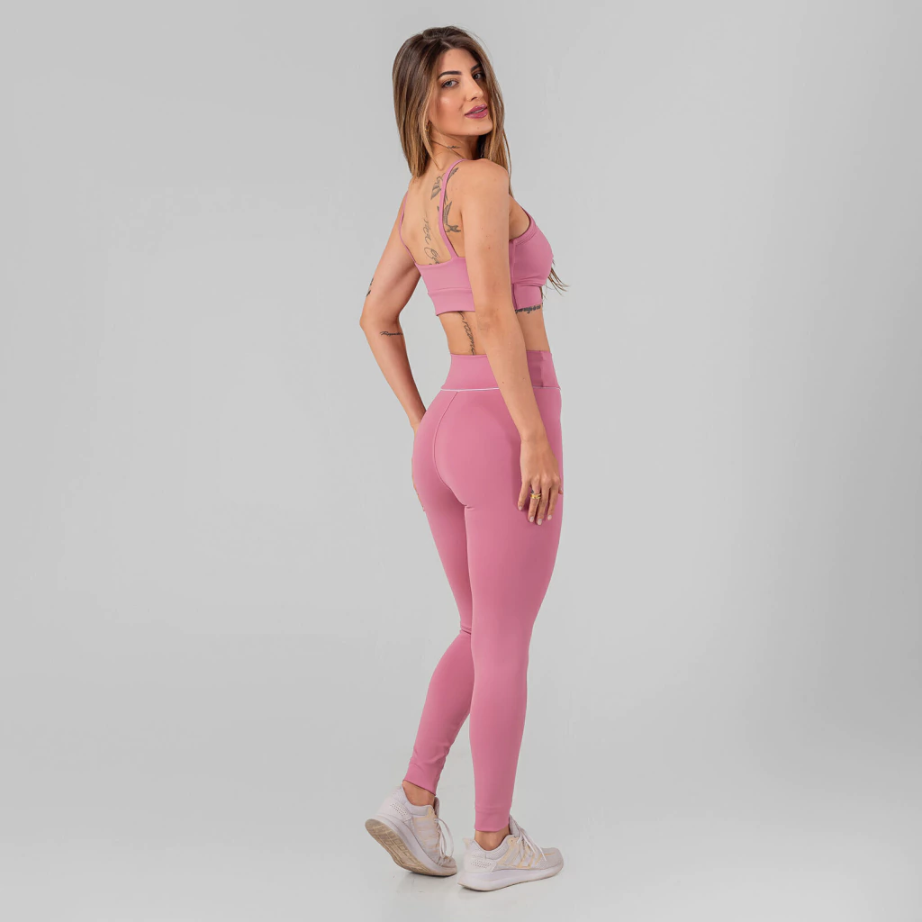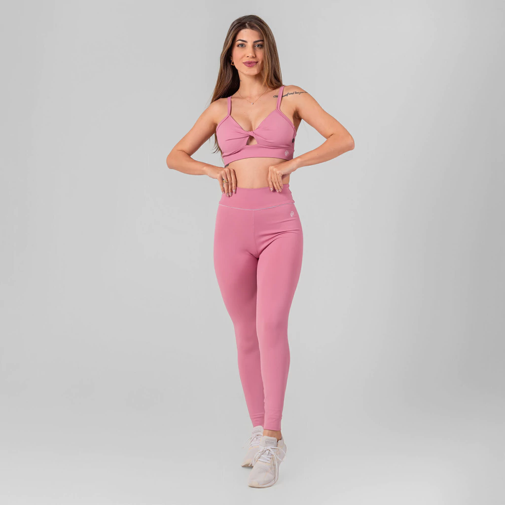 Além disso, o tom rosa foi escolhido para transmitir leveza e luminosidade, trazendo um toque sofisticado para o seu look fitness.