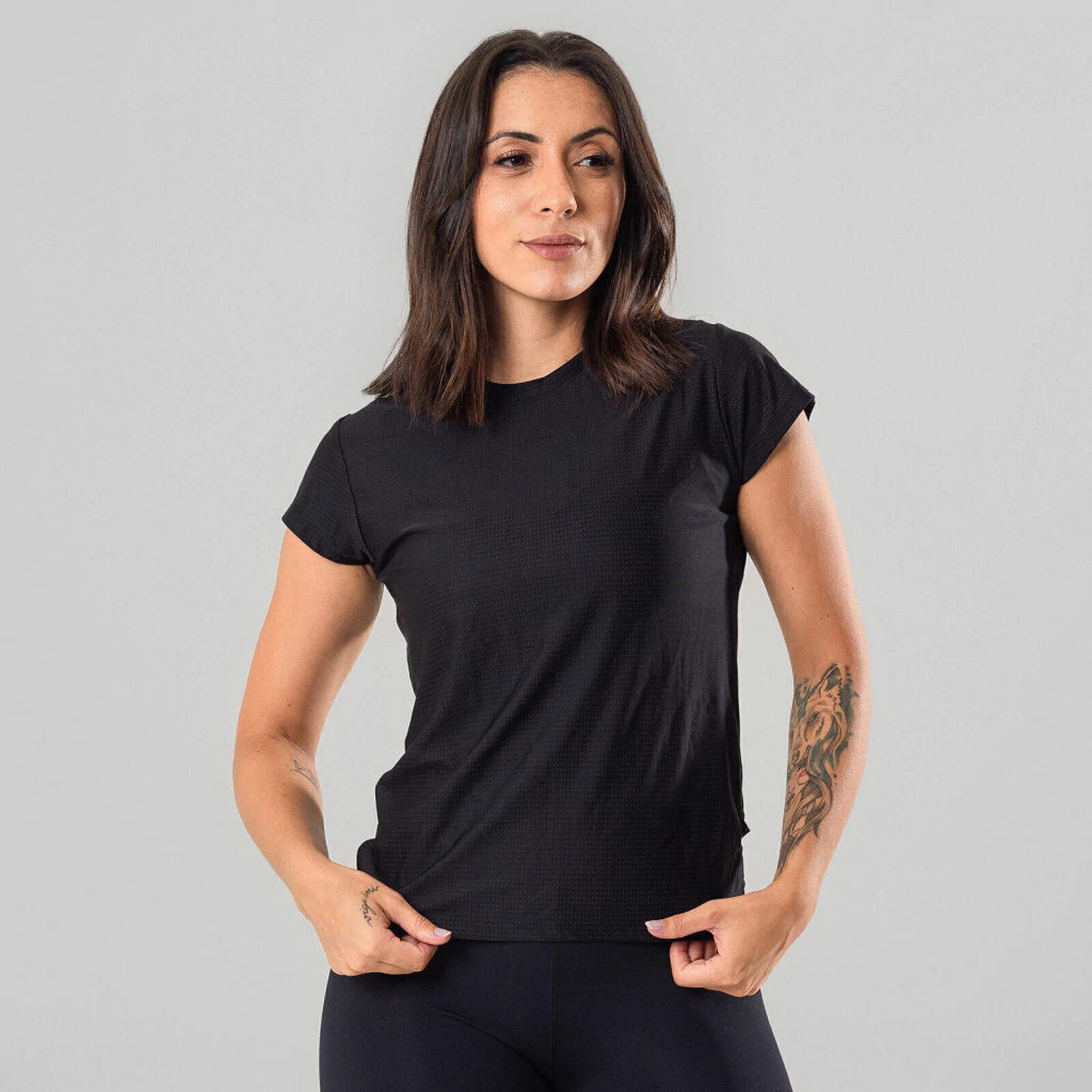 Design: Corte básico, com caimento solto, que se adapta a diferentes tipos de corpos.