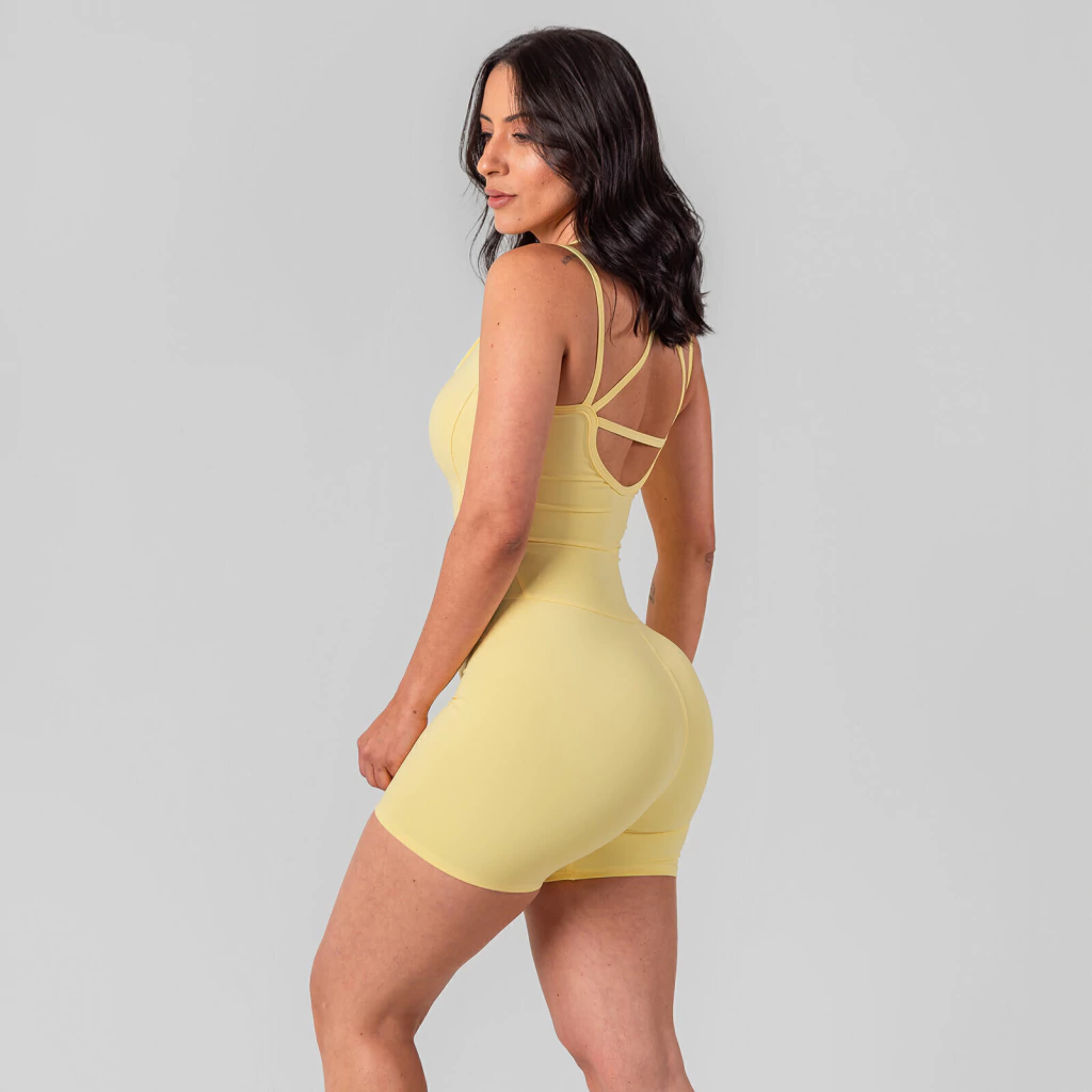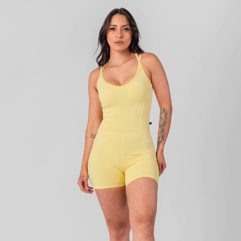 Eleve seus treinos com o Macacão Minimal Amarelo Manteiga Alças Cruzadas, a peça que une design sofisticado, conforto extremo e performance profissional. Desenvolvido para mulheres que vivem o movimento e não abrem mão de estilo, esse macacão veste como uma segunda pele, proporcionando segurança e liberdade nos seus treinos mais intensos ou no seu dia a dia agitado.