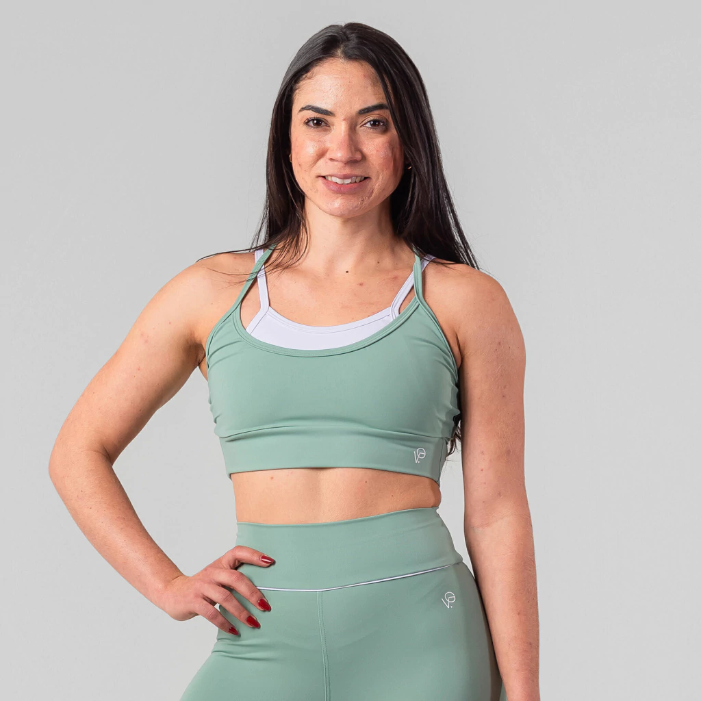 O Top Minimal Verde e Branco Viguini Fitness wear é a escolha ideal para quem busca suporte, conforto e estilo em um só produto. Com um design moderno e inovador, esse top possui duas alças sobrepostas – uma na cor amarelo manteiga e outra branco – que cruzam nas costas, trazendo não só charme ao visual, mas também um excelente ajuste ao corpo durante os treinos. As faixas recortadas na parte de trás criam um efeito visual poderoso e deixam o look muito mais estiloso e exclusivo, sem abrir mão do conforto.