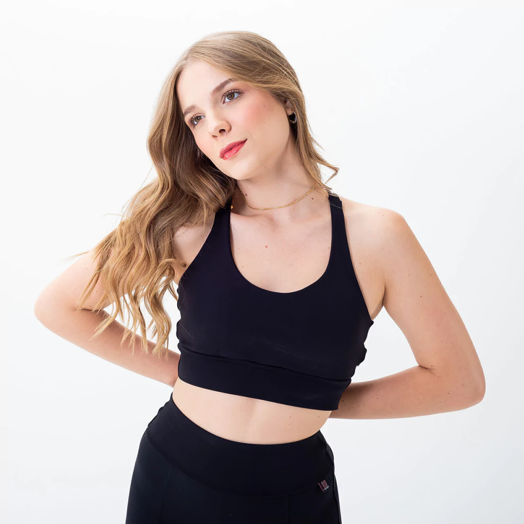 Alça trançada nas costas: Além de ser estilosa, oferece suporte extra durante os treinos.